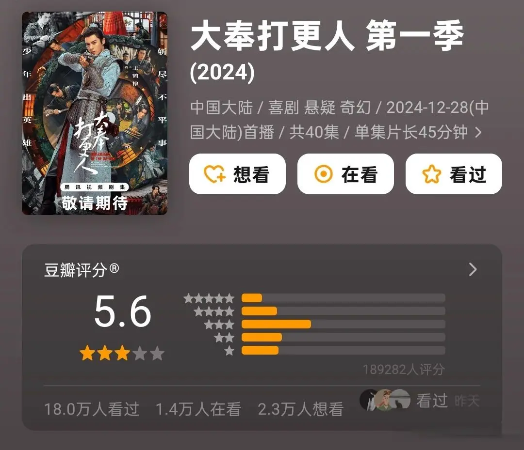不少粉丝还想拿《大奉打更人》给他挽尊,可明眼人都看得出来,这部剧看似数据光鲜亮丽,播放量、热搜热度样样不差,但口碑却一塌糊涂。