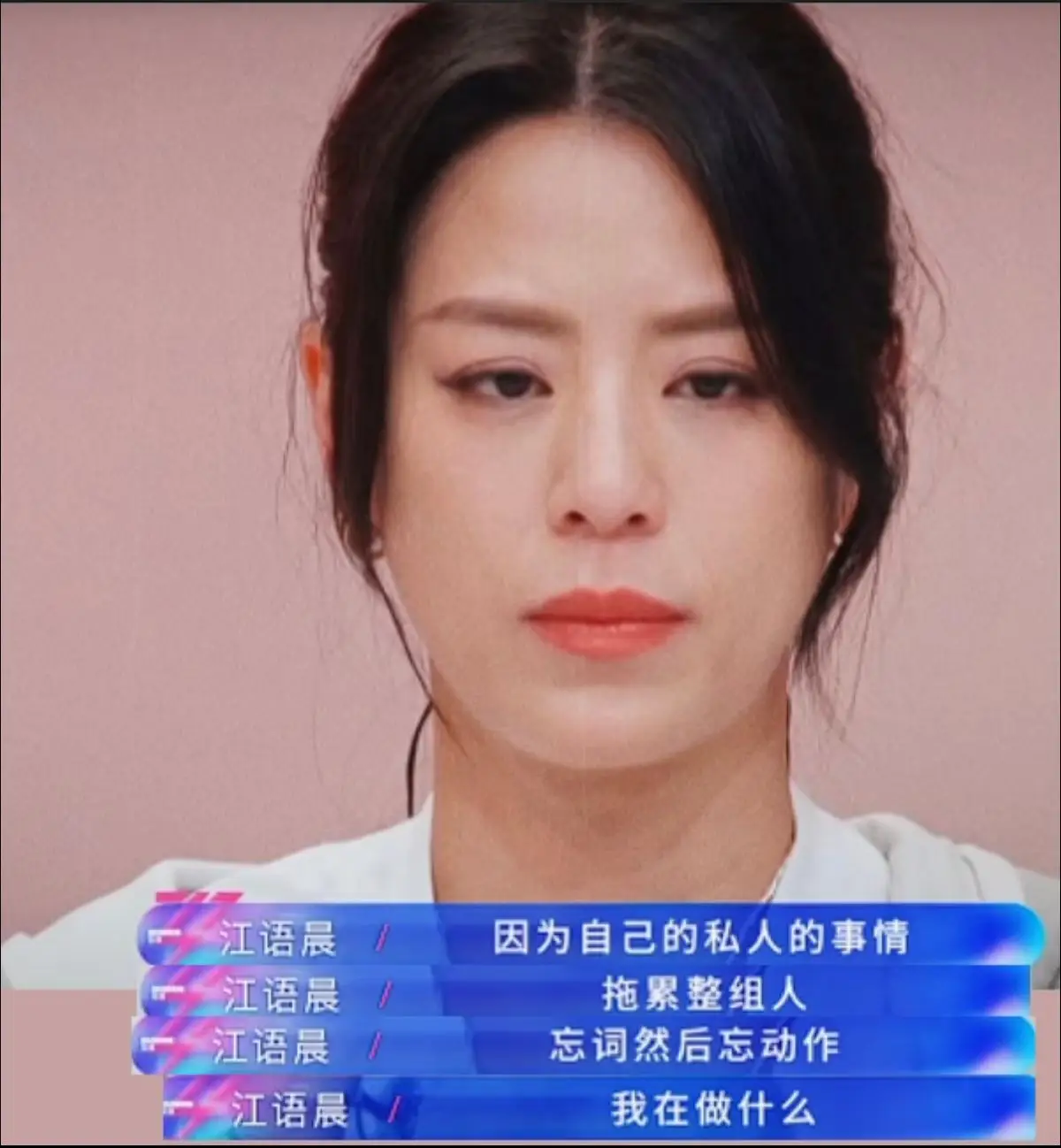 不仅如此,由于私人的事情,江语晨在小考中忘词、忘动作,导致整组分数不佳,也在网上一再掀起讨论。