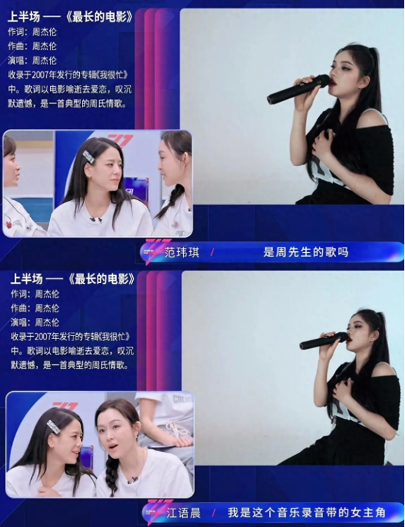 《最长的电影》前奏一响,江语晨明显顿了两秒,面对范玮琪“这是不是周先生的歌”的询问,她大方坦言,自己是这首歌的女主角。