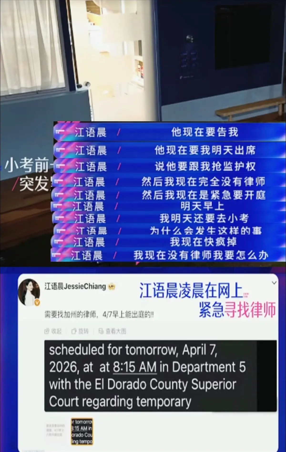 一边面临着压力巨大的小考,另一边江语晨深夜接到了到前夫的消息,要争夺孩子的监护权,当天,她还在社交平台上紧急寻找律师。